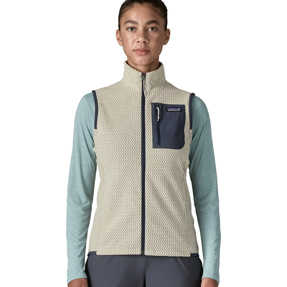 The R1® Air Vest is a lightweight, highly breathable and quick-drying technical fleece core-warmer from Patagonia. Perfect for cool conditions and boosting warmth without restricting the shoulders and arms. Built with 100% recycled polyester fabric for comfort on the move and made in a Fair Trade Certified™ factory.