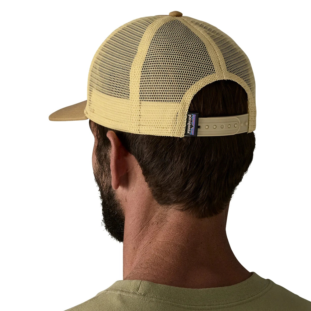 A closer-fitting trucker-style hat from Patagonia with an organic cotton front, mesh back, adjustable snap closure for fit and embroidered original Patagonia Flying Fish logo patch on the front panel.