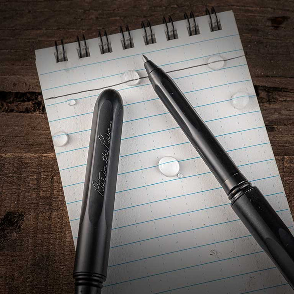 The proprietary ink and delivery system used exclusively in Rite in the Rain Pens will write without skipping even in extremely wet conditions. The pressurised ink cartridge performs in temperatures from -30F to 250F, under water (up to 35 ft), and at any angle.