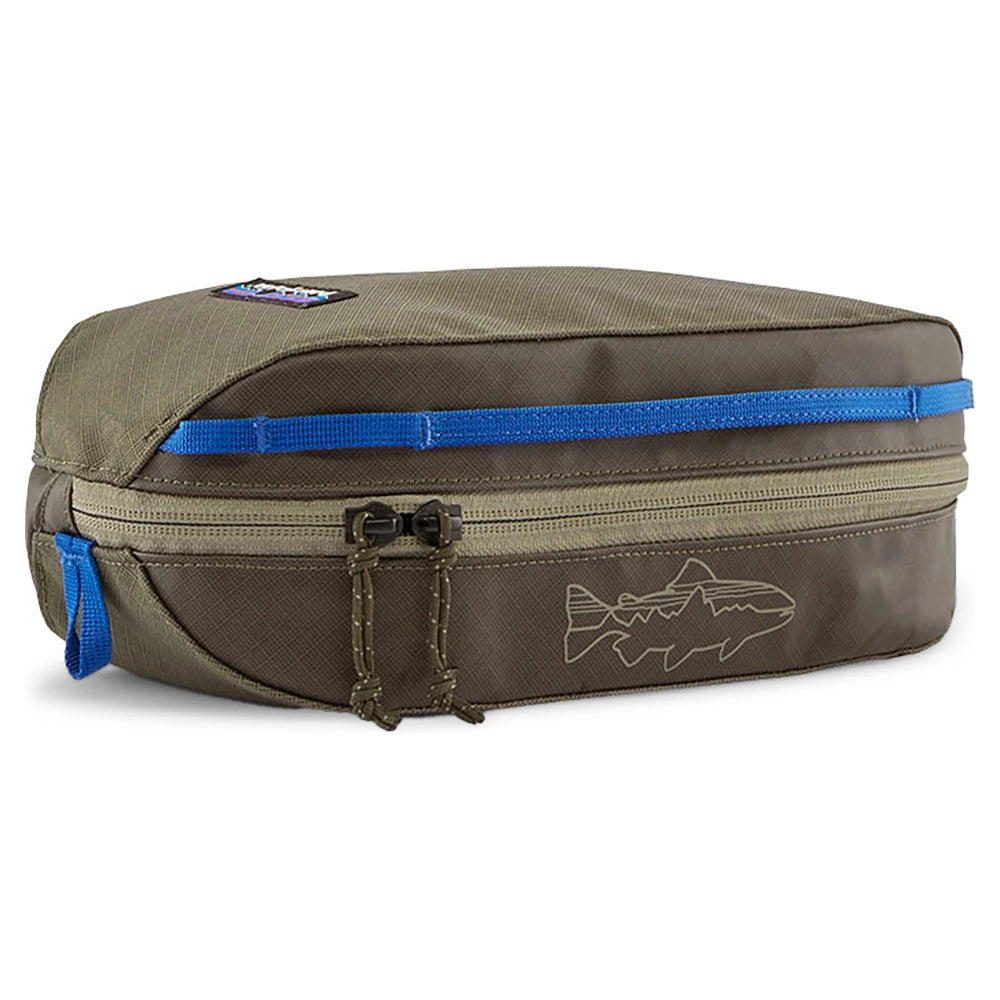 A small wash bag or gear organiser from Patagonia. Made with a rugged and super strong 100% recycled polyester fabric, lining, webbing and treated with a pioneering recycled TPU-film laminate with a sleek matte finish.