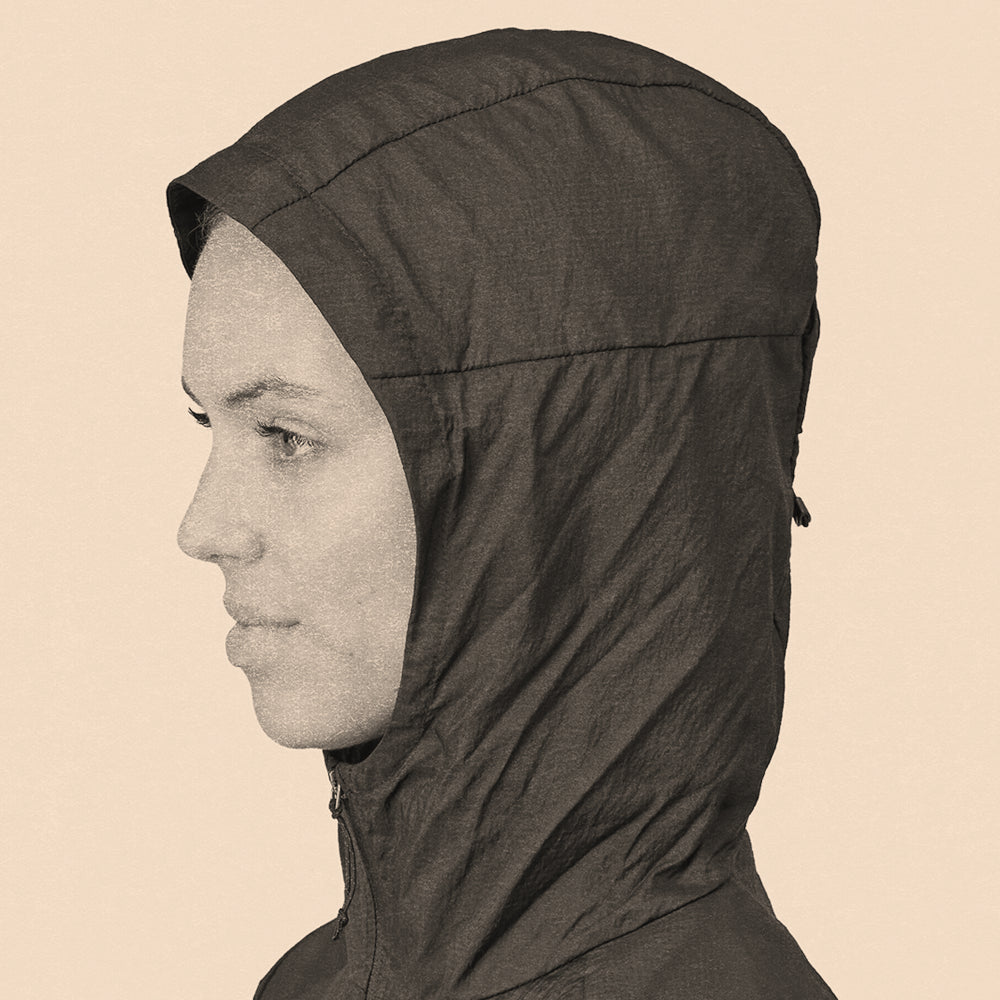 The Houdini packs neatly into its own small, vertically zippered chest pocket, which has a reinforced clip-in loop for attaching to your hydration-pack straps. A DWR (durable water repellent) made without intentionally added PFAS to resist light moisture coats the shell and the centre-front zipper. Features a reflective logo on the left chest and centre-back neck.