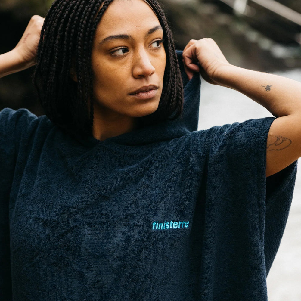 An update to Finisterre's bestselling Vean towelling robe this warm and soft organic cotton changing robe is an must-have for any beach day.