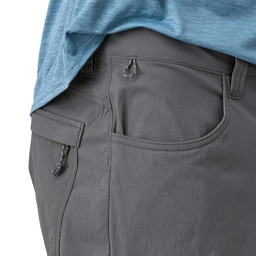 The waistband of the Quandary Shorts have belt loops, a zipper fly with a metal-button closure and a hidden drawcord. Two front drop-in pockets and two back patch pockets, and there's a reinforced hemostat/carabiner loop on the front-right pocket. The inseam features a gusset for increased mobility.