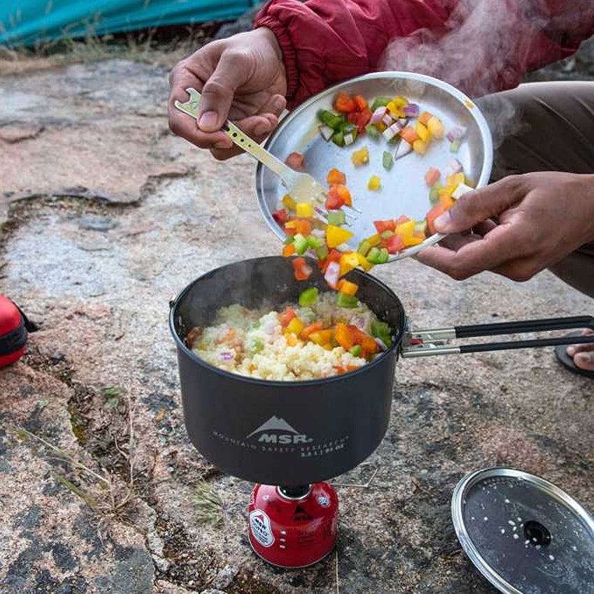 Showcasing MSR’s premium Fusion® ceramic nonstick surface that’s extra-tough, safe at high heat, and PFTE- and PFOA-free, letting you prep meals with peace of mind. Together, the 2.5 L and 1.5 L pots handle a range of cooking duties and nest together to save room in your pack. Lightweight, with kitchen-quality performance, this set ensures you can bring your culinary ambitions to camping.