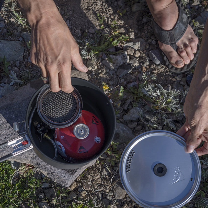 Compact Nesting: Perfect, rattle free nesting with an 8-oz MSR® IsoPro™ fuel canister (sold separately)