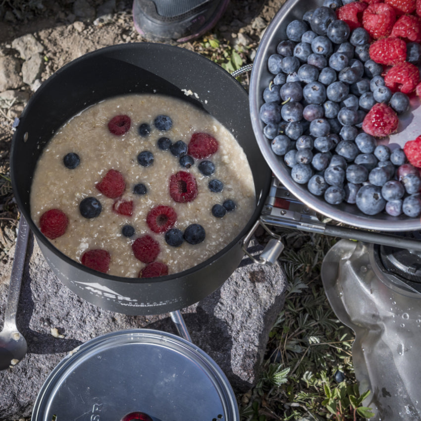 Increase your cooking capacity and trade freeze-dried meals at the camp site for real food options with the WindBurner Sauce Pot. Designed by MSR for group cooking and simmered cuisine, the 2.5 L aluminium pot features an enclosed, heat-capturing ring on the bottom and a durable Fusion® ceramic nonstick surface that allow for more even cooking. Great for making sauces, chili, rice, and more in the backcountry, the pot nests with WindBurner Stove Systems and other WindBurner cookware.