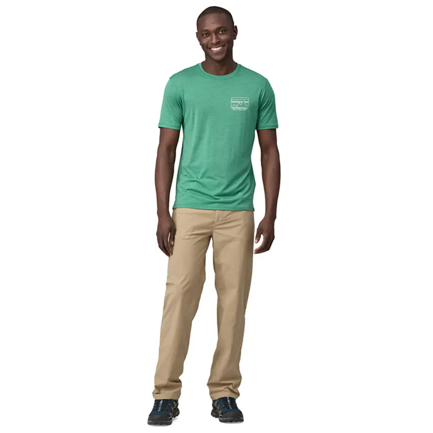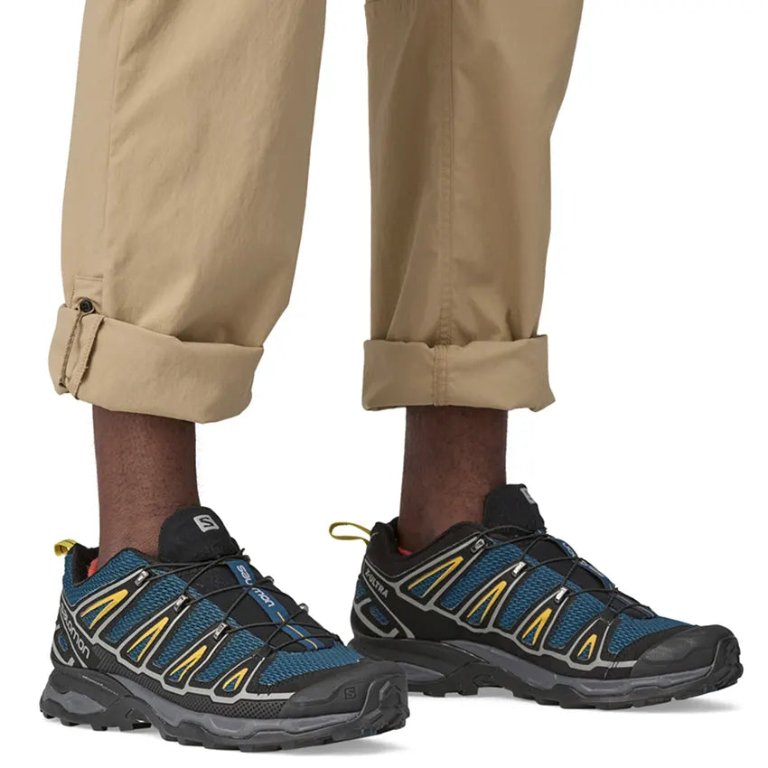 Designed for comfort and unconstrained movement, these multifunctional hiking pants from Patagonia are made of 96% NetPlus® - a postconsumer recycled nylon made from recycled fishing nets to help reduce ocean plastic pollution and 4% elastane plain weave. With a durable water repellent (DWR) finish made without perfluorinated chemicals (PFCs/PFAS) to shed light moisture, and 40+ UPF sun protection.