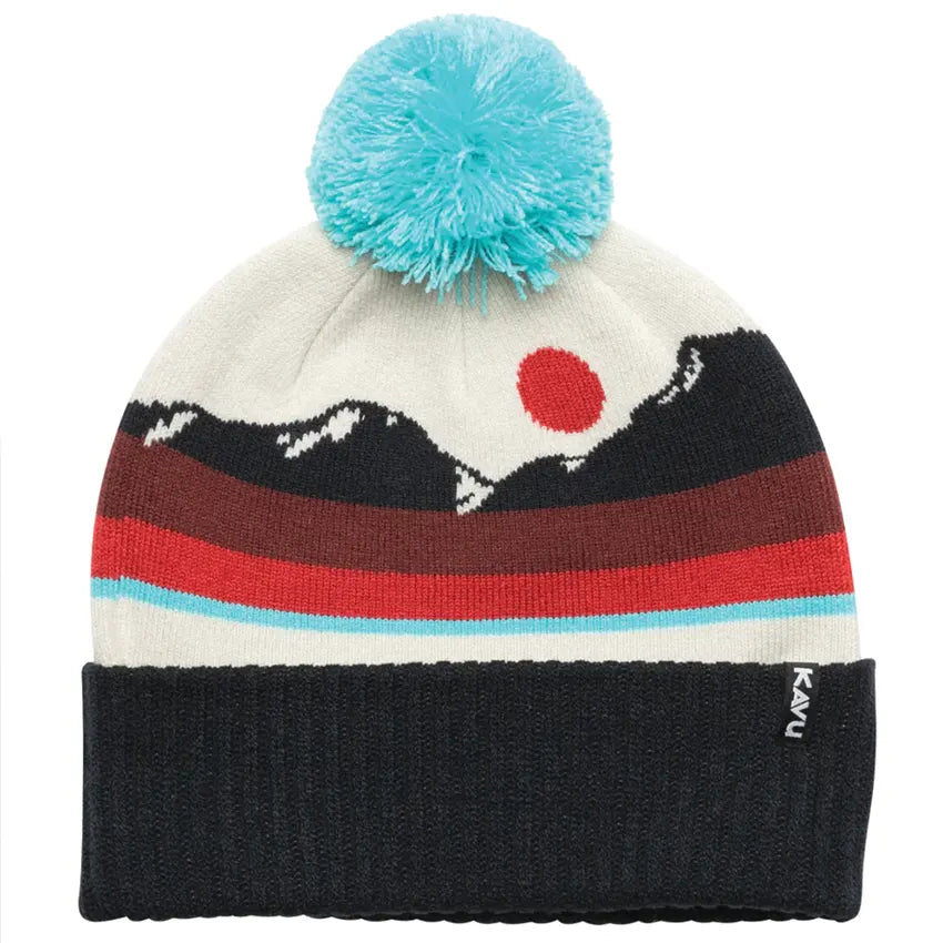 Classic cuffed winter beanie from KAVU, the Herschel Hat features a jacquard design and multi coloured pom on top - perfect to keep you warm on a chilly winters day.