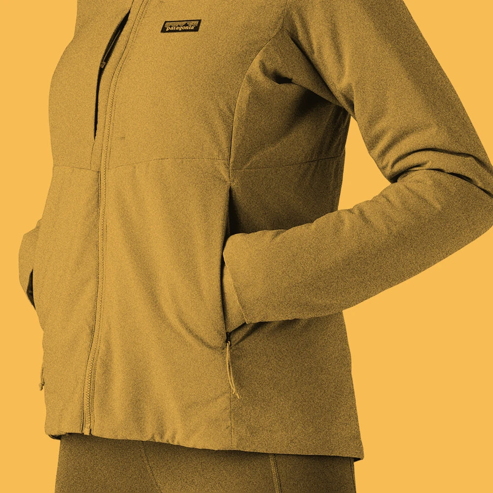 Revolutionary 60-g FullRange® 100% polyester (40% recycled) insulation warms and stretches and, combined with the shell and lining, supplies outstanding mechanical stretch and unprecedented air permeability (40CFM), allowing excess heat to move away from the body. Stretch fabrics and insulation, articulated patterning and strategically placed, low-profile quilting provide exceptional range of motion for unhindered movement. Two handwarmer pockets and a left-chest pocket are zippered, low-profile and low-bulk to wear comfortably with a harness or a pack. The whole jacket also self-stuffs into left-chest pocket for keeping with you on the go.