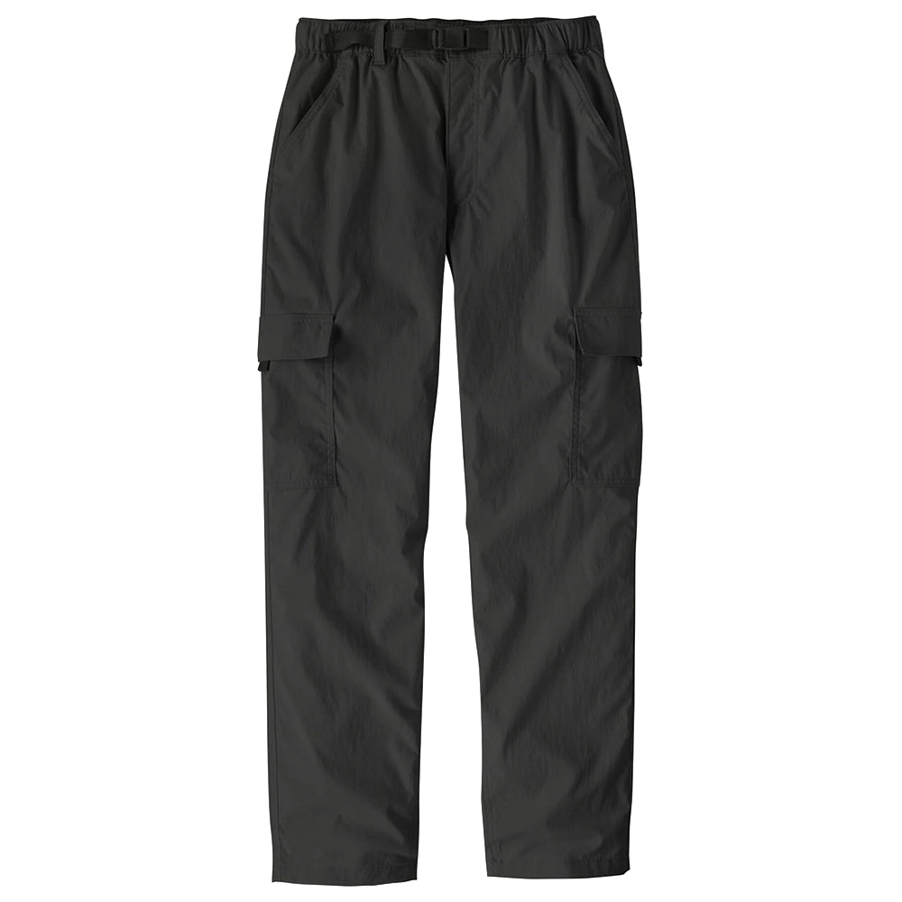 The Outdoor Everyday Cargo Pants fabric is treated with a durable water repellent (DWR) finish made without intentionally added PFAS and offers 40+ UPF sun protection. With an elastic waistband that has a zip fly and a button closure for secure fit. There's also an adjustable webbing belt that can be tucked into the belt loop to keep excess webbing at bay. Featuring two front drop-in pockets and two thigh cargo pockets that have flaps and hook-and-loop closures, with webbing tabs for ease of use.
