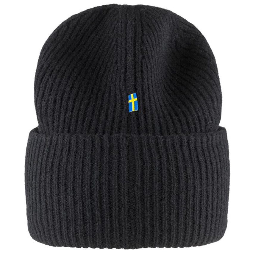Chunky rib-knitted hat from Fjällräven in a soft, warm lambswool. Robust, two-layer knitting with wide folded edge makes for a super cosy and warming hat. Features a classic embroidered original 1960 Fjällräven Logo emblem on the front.