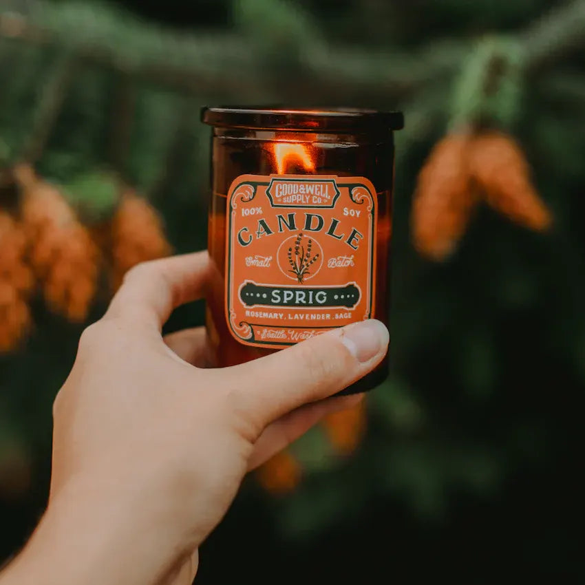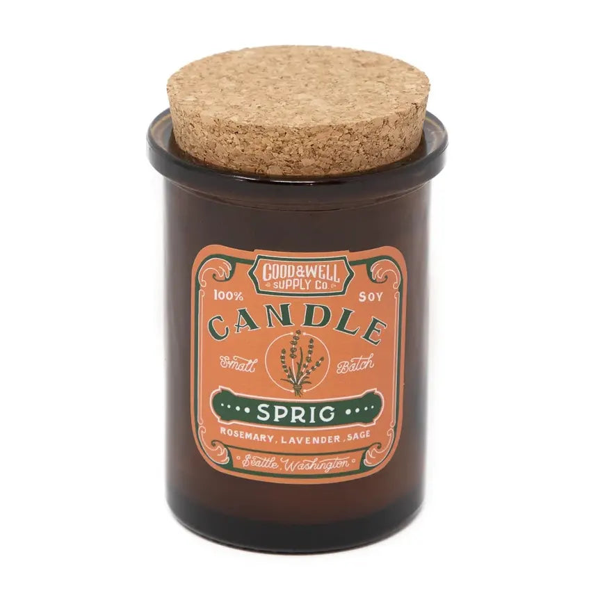 These beautiful candles from Good & Well are hand poured into a glass amber apothecary jar with cork lid. Made with all natural soy wax, USA-grown balsa wood wicks, and the highest quality essential oil and botanical fragrance blends.