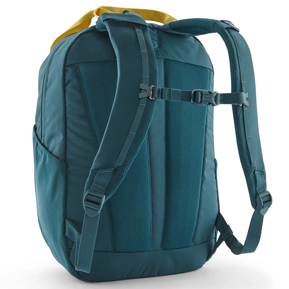 Made from 100% recycled polyester with a PFC-free DWR finish. The removable padded sleeve fits laptops up to 13" and has a secure zippered pocket to hold pens, cords and other desktop items to ease transitions from work to home. Hydration hanger, pass-through access and breathable back panel. The front stash pocket holds small items and keeps valuable close at hand and there's a bike-light clipping point at base of pack.