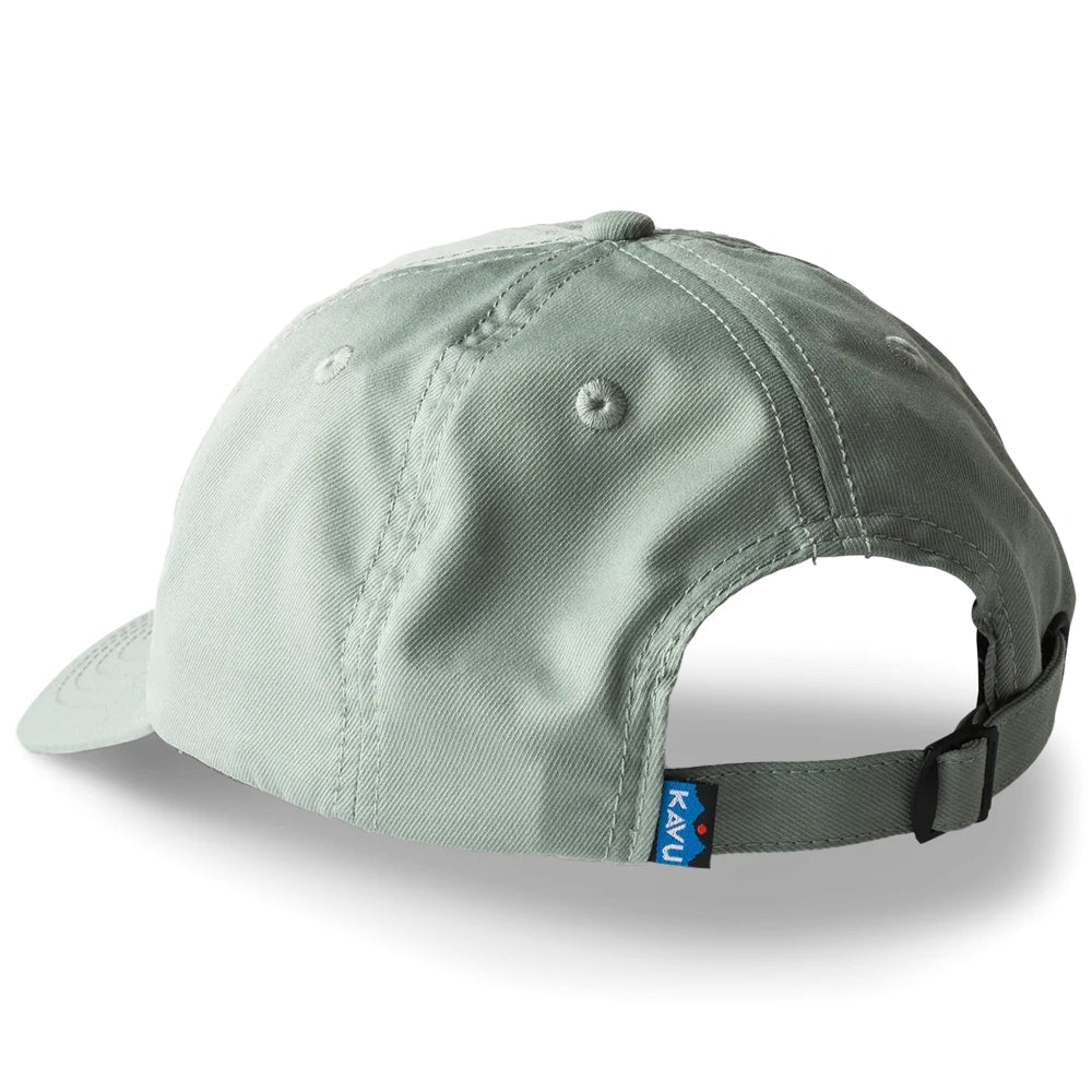 With a low profile, KAVU logo label on front, embroidered eyelets, curved bill, dark bronze metal tri glide buckle with self-fabric adjustable strap at back that will adjust to fit most head sizes. Interior taping and moisture absorbing sweatband will keep you comfortable all day.