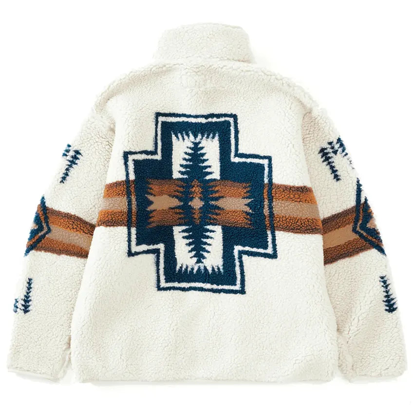 The Unisex Boa Stand Blouson is constructed from a 100% polyester fabric and features a classic Pendleton print across the front, back and arms that's also mirrored on the inside. Along with Pendleton branded pull tabs, the fleece jacket has 2 side entry pockets and a zip closure front chest pocket.