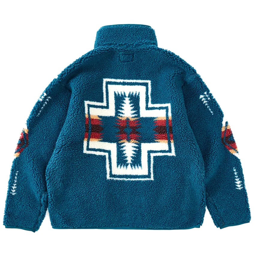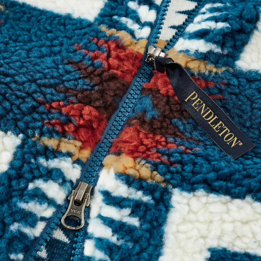 The Unisex Boa Stand Blouson is constructed from a 100% polyester fabric and features a classic Pendleton print across the front, back and arms that's also mirrored on the inside. Along with Pendleton branded pull tabs, the fleece jacket has 2 side entry pockets and a zip closure front chest pocket.