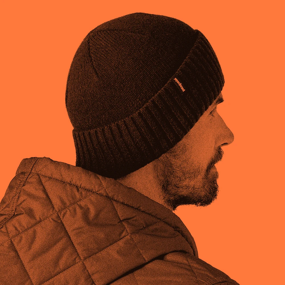 A warm blend of recycled wool and nylon, it feels soft against skin, sheds moisture and insulates even when wet. A 2.5" rib-knit cuff fits snugly around the ears for a good bond in windy weather.