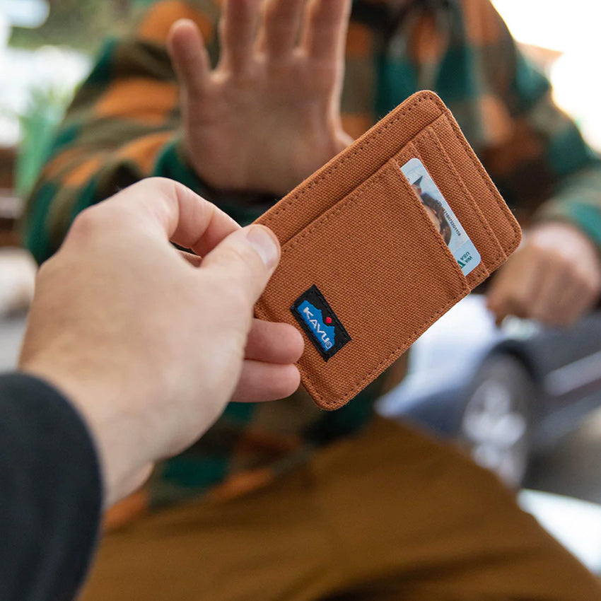 The Fairbanks Wallet from KAVU is a minimalist's dream. With a super low. pocket light profile - but enough space for your essential cards and cash. The wallet is designed with rugged-cut corners and consists of a water resistant fabric that can handle whatever life throws your way. Stay on the go and stay organized with the Fairbanks Wallet.