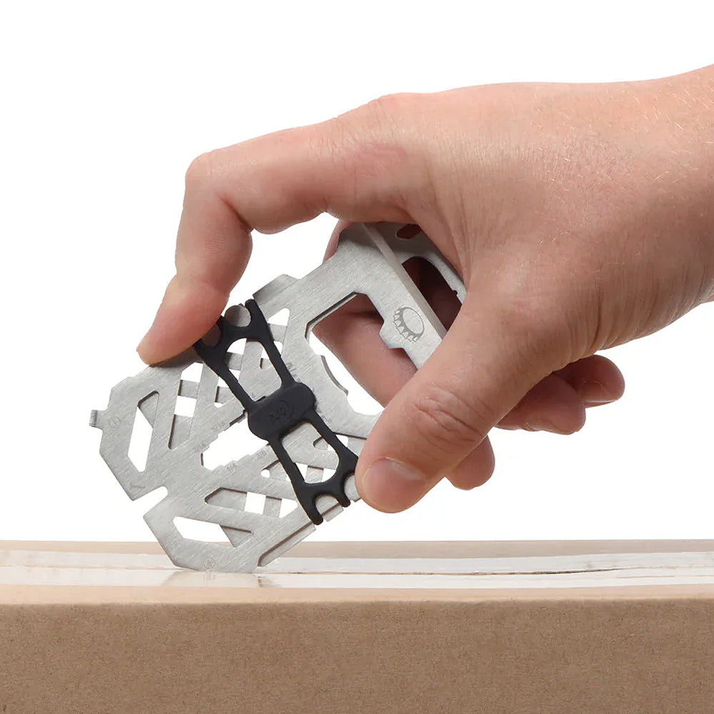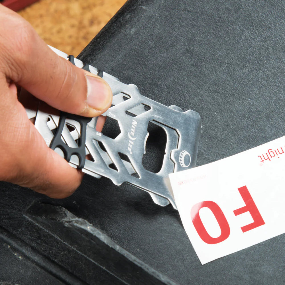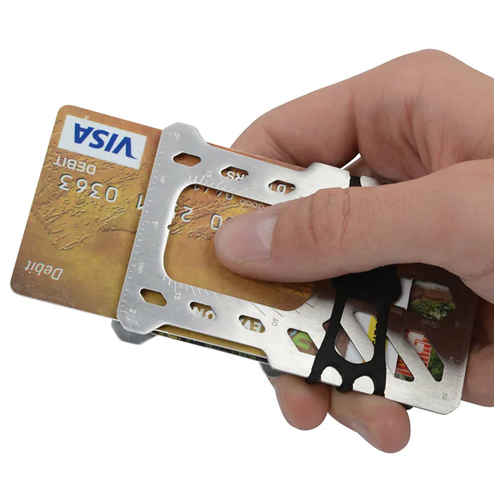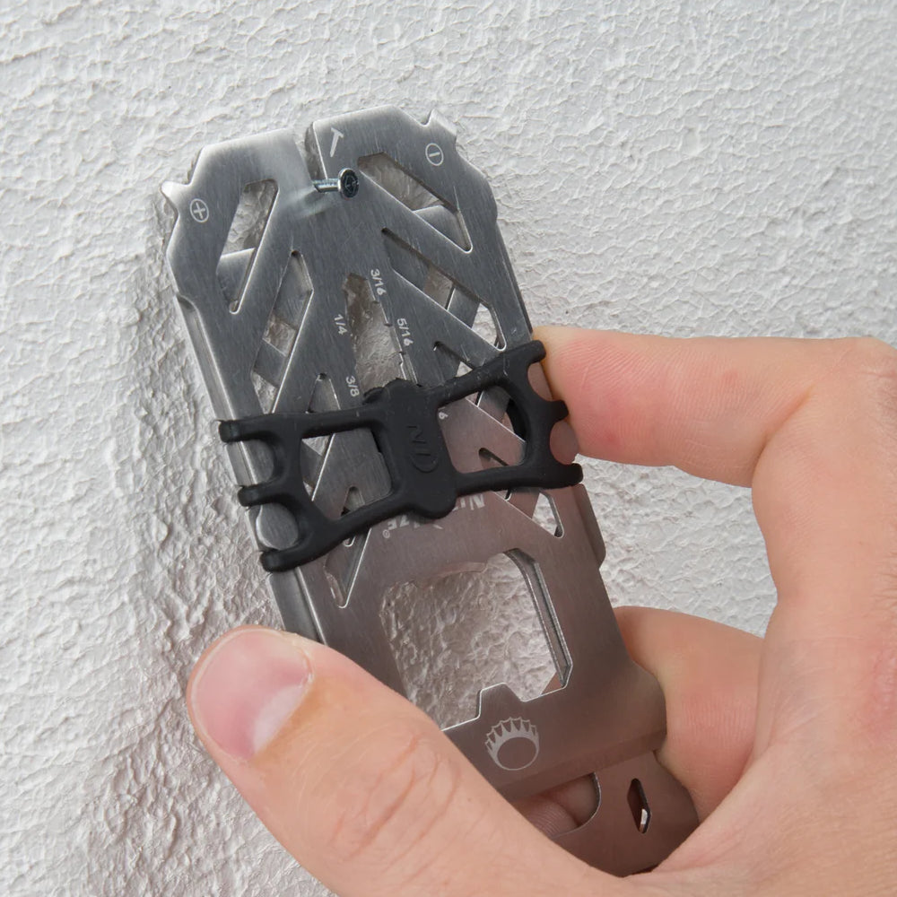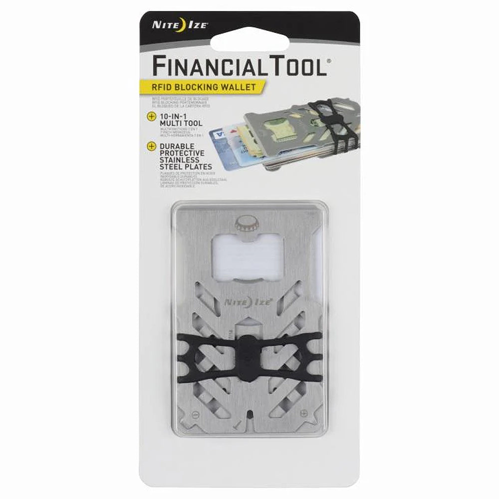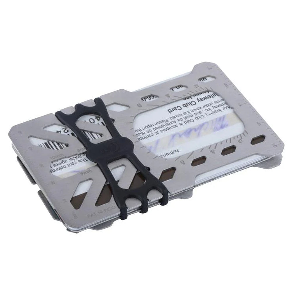 This triple-duty Financial Tool is a wallet, multi tool, and RFID-blocking protector all in one. Featuring 10 different tools integrated into its compact, heat-treated stainless steel plates held together by Nite Ize high tensile Cash Wrap Strap, it offers endless problem solving solutions all while protecting your cards from anyone looking to compromise them.