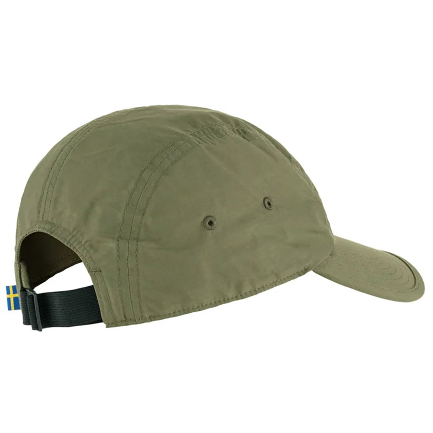 Lightweight, packable cap made of waxed polyamide/organic cotton that is wind resistant and quick drying. The elastic webbing adjustment at the back ensures a good fit and sewn ventilation eyelets will keep you cool and there is an integrated sweatband inside to wick away moisture. High Coast Fjällräven logo on the front left is reflective.