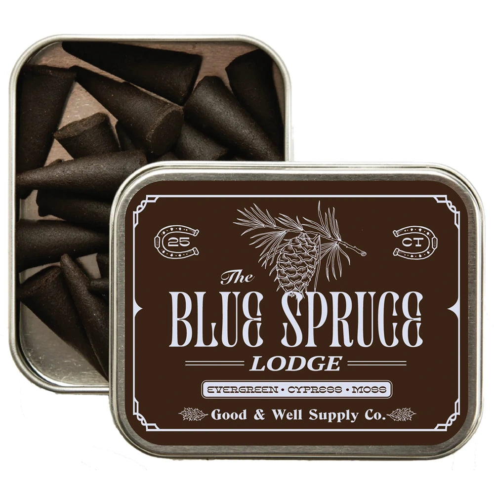 Good & Well's incense cones are hand-dipped and housed in a sturdy aluminium tin, the lid of which can be used as a burning surface.