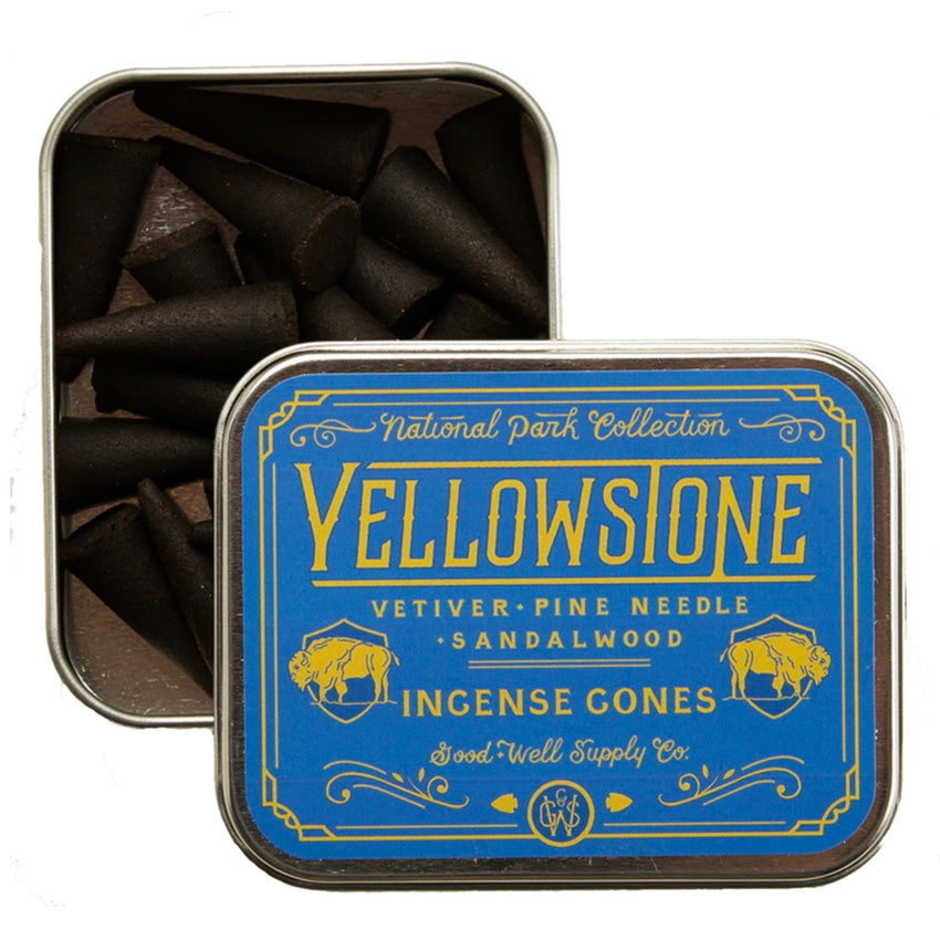 Good & Well's incense cones are hand-dipped and housed in a sturdy aluminium tin, the lid of which can be used as a burning surface. Each cone will burn for 20-30 minutes with a scent longevity of 2-4 hours. Crafted to celebrate nature and to advocate for and support public lands through Good & Well's annual donations to the National Park Foundation and Washington National Park Fund.