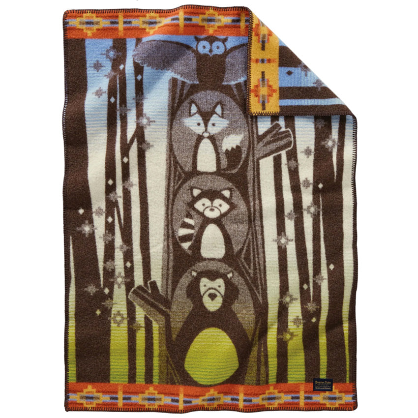 From Pendleton: "The forest is a magical place to explore. Follow a trail through the tall trees, tarry along a riverbank. Touch the roughness of a tree’s bark. Step lightly on the soft carpet of moss. Hear the call of birds, the whisper of branches. Do you sense the eyes of the woodland watchers? The creatures of the forest surround you. Be still, and you may be lucky enough to see Bear, Fox, Raccoon or Owl. But leave your forest friends where they belong, safe in their world. Remember, they live here. You are only a visitor."