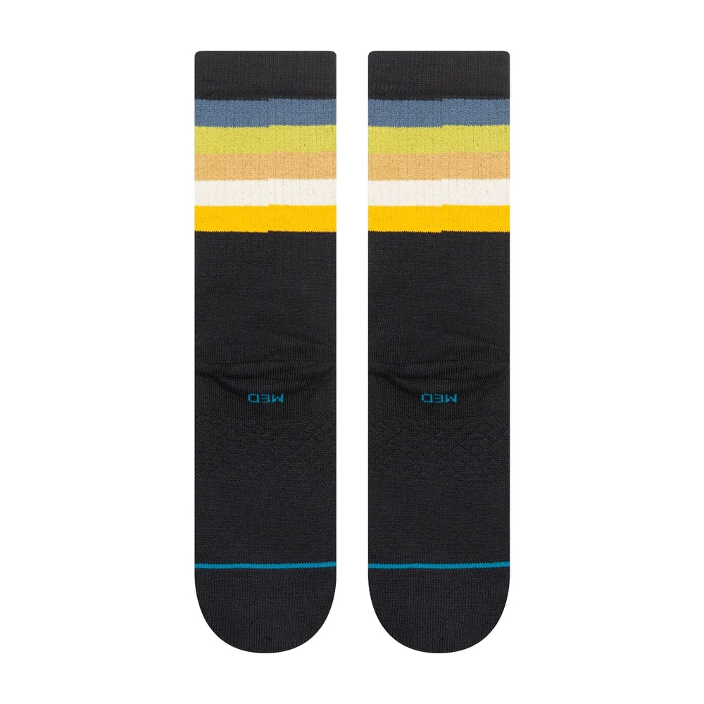 A fan-favourite crew height sock from Stance, the Maliboo Socks are designed with extra comfort in every step, featuring a seamless toe cap, targeted cushioning and stay-put fit. Made from combed cotton and featuring an elastic arch band, deep heel pockets, reinforced toes to keep you cool and comfortable.