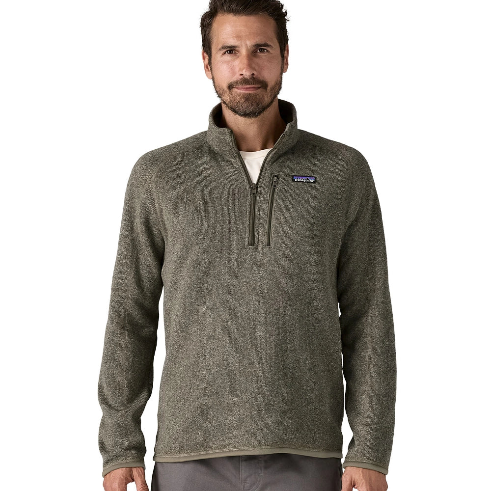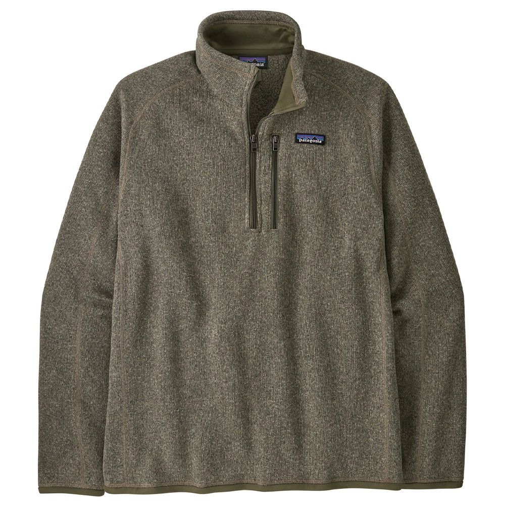 Made with 100% recycled polyester knitted fleece with a fleece interior and heathered yarns. The Men's Better Sweater 1/4 Zip has a quarter-zip in the front for easy put-on-and-off, with zip-through stand-up collar and raglan sleeves for mobility and pack-wearing comfort. Zippered left-chest pocket and shape-holding micropolyester-jersey trim at cuffs and hem to resist abrasion.