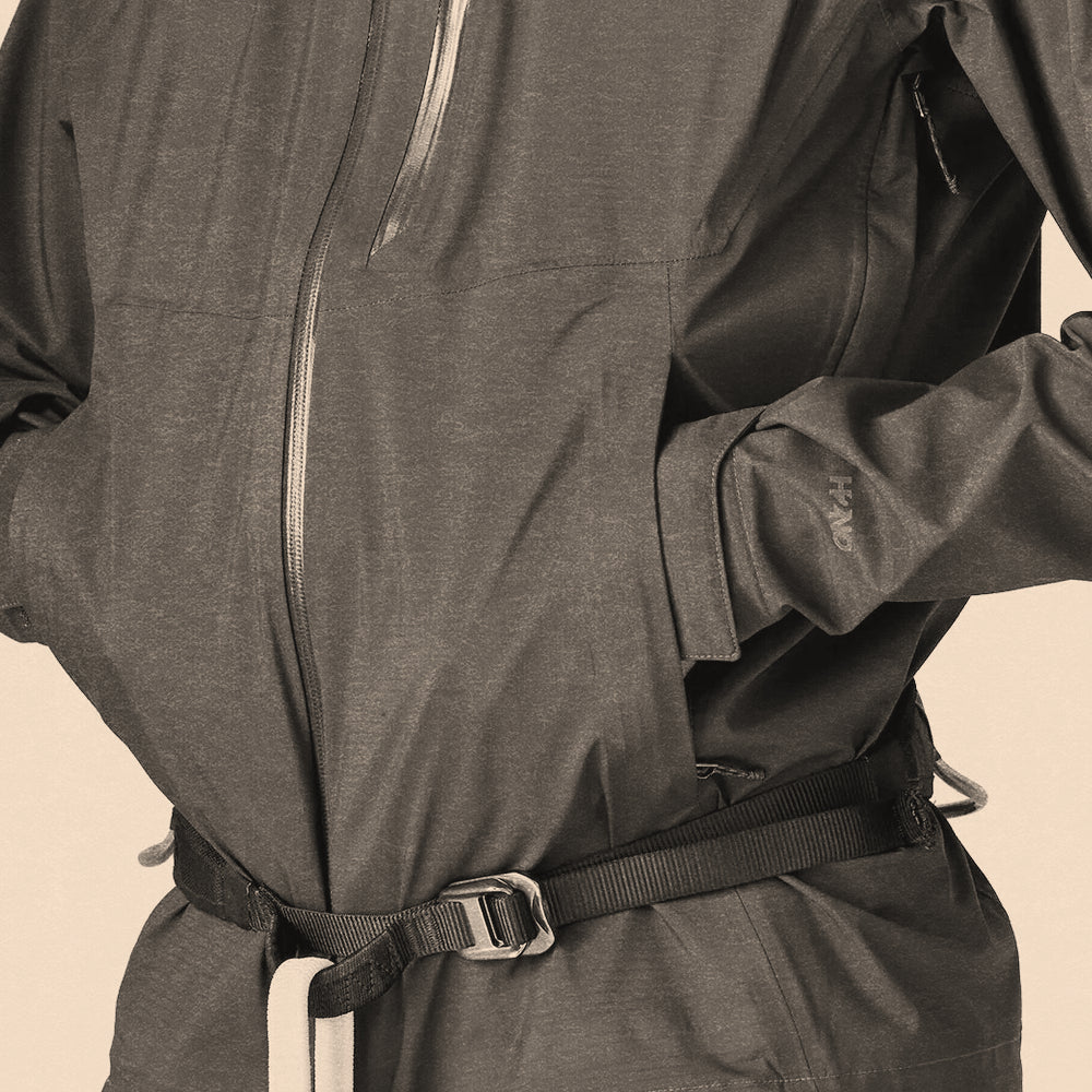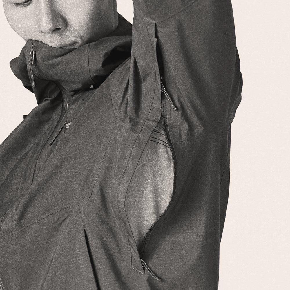 Centre-front zipper and chest pocket with watertight zips and zipper garages and two welted handwarmer pockets that stay clear of pack waistbelt or harness. Under the arms there are pit zips with welted, watertight two-way zippers to provide ventilation when the walking gets tough. Adjustable drawcord cinch at the hem is routed up through front pockets to seal out weather and reduce bulk under pack waistbelt. The Granite Crest even self-stuffs into left-chest pocket for keeping with you for any day use.
