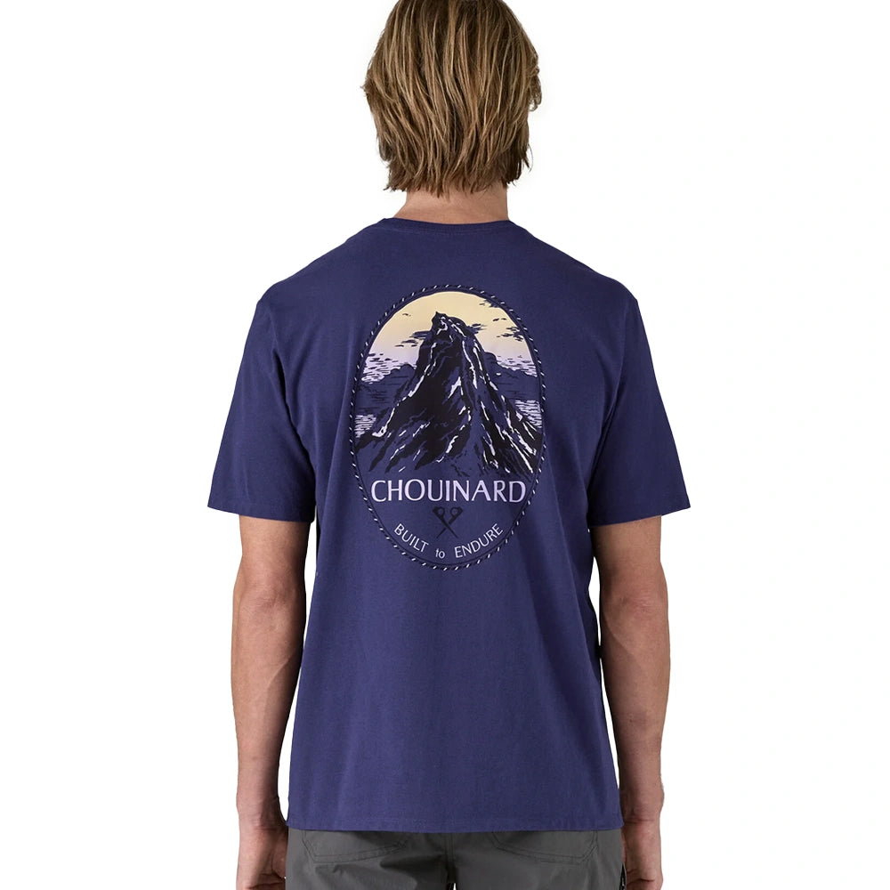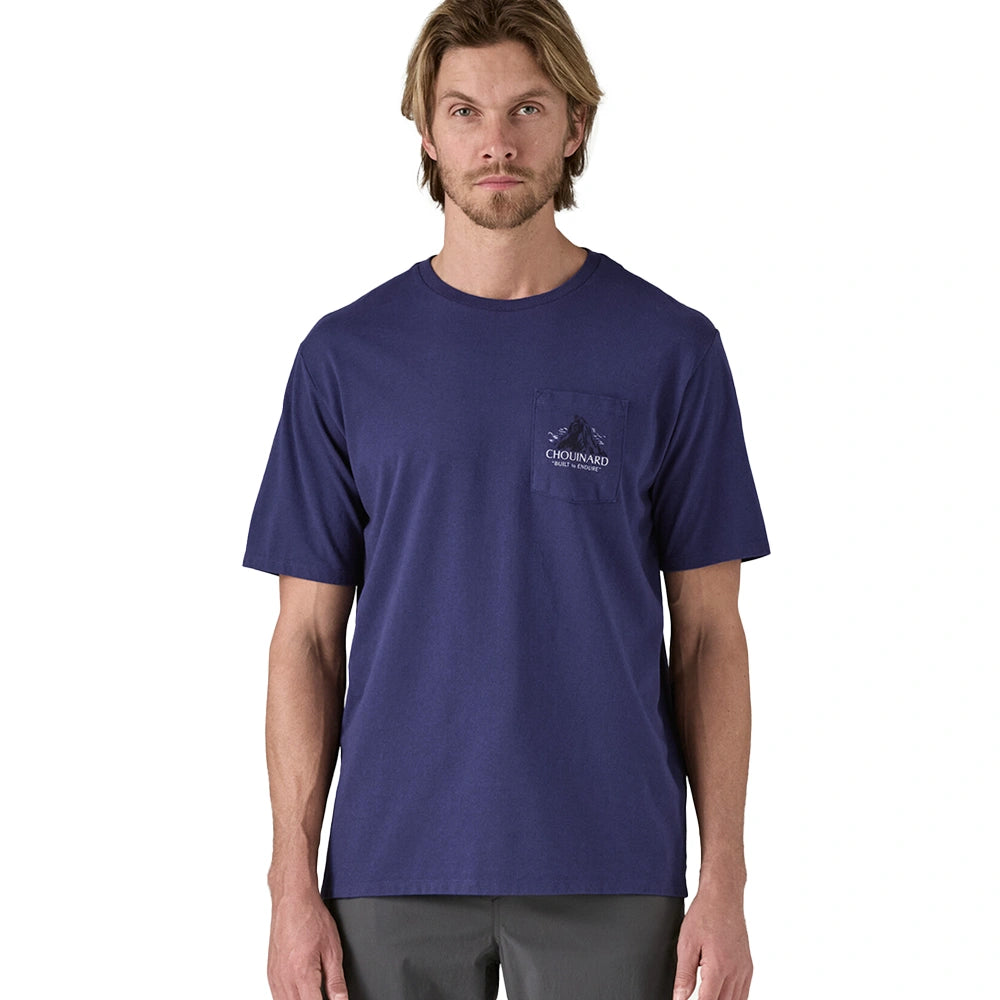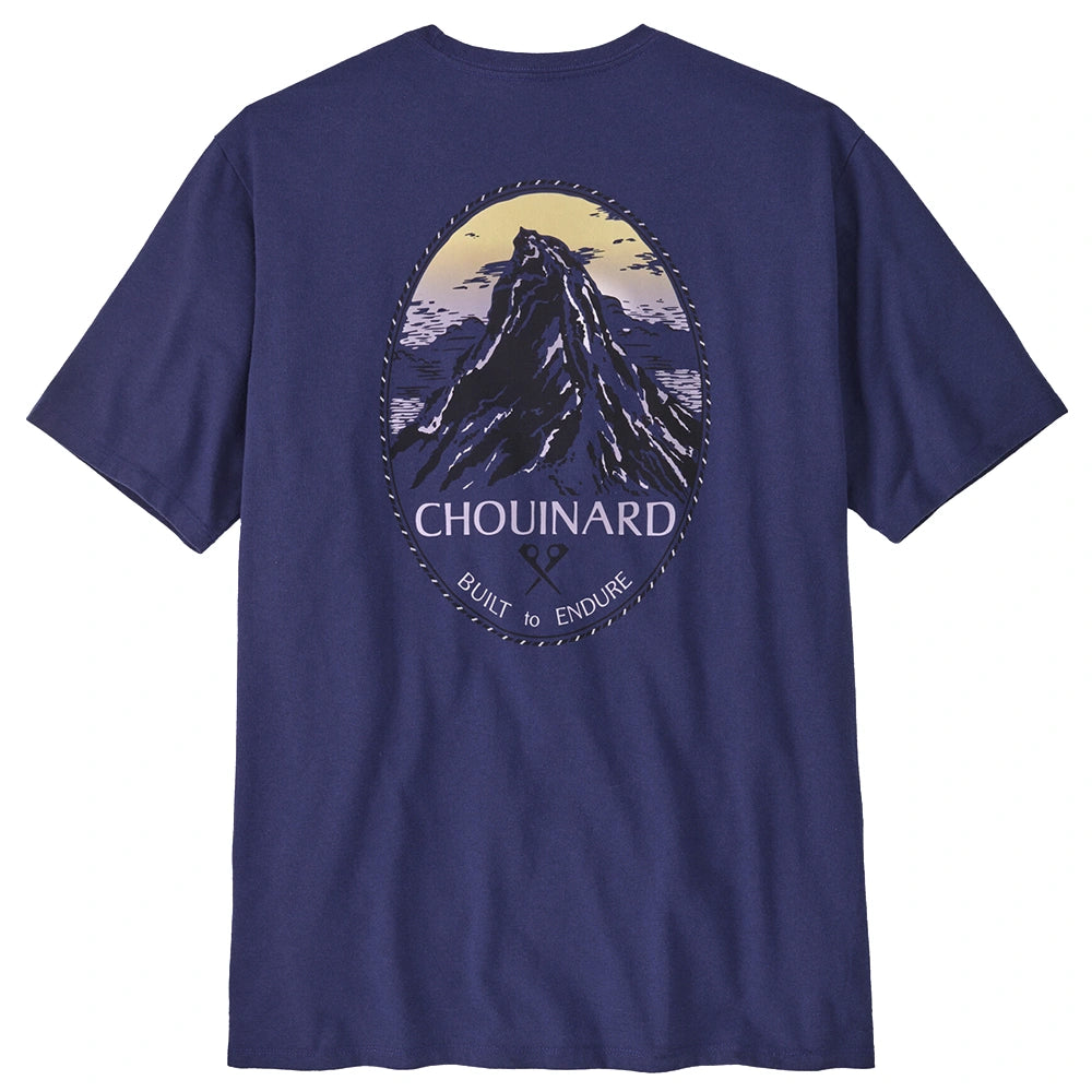 Patagonia have added gradient printed colour to this classic graphic from their early days - featured on their Chouinard Crest Pocket Responsibili-Tee® that's built with recycled fabrics. By utilising fabric scraps and recycled bottles, they reduce reliance on virgin raw materials. Made in a Fair Trade Certified™ factory.