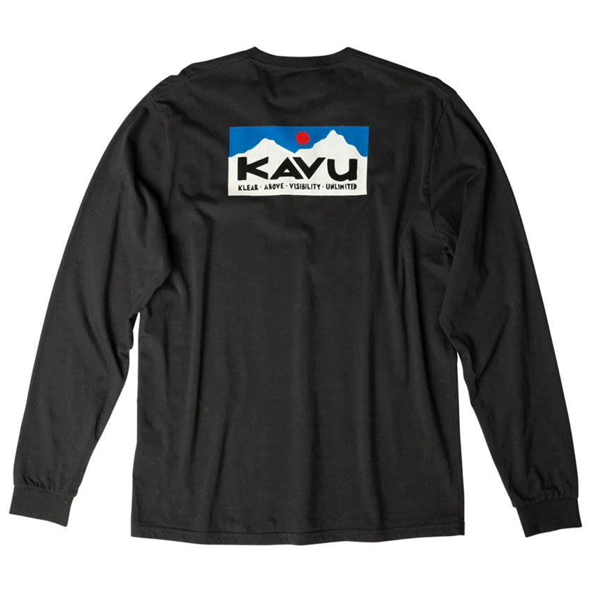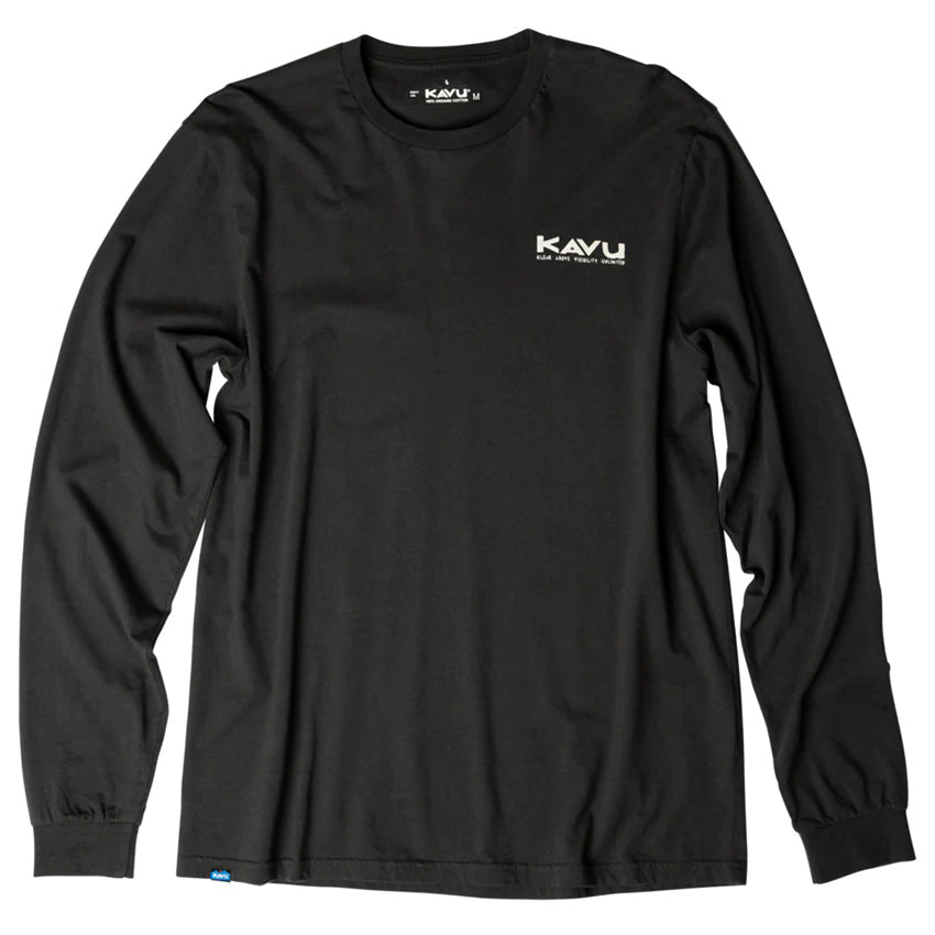 A casual fit, long sleeve crew neck T-shirt from KAVU. With a small screen print on front left chest, and the main screen print design on the centre back.
