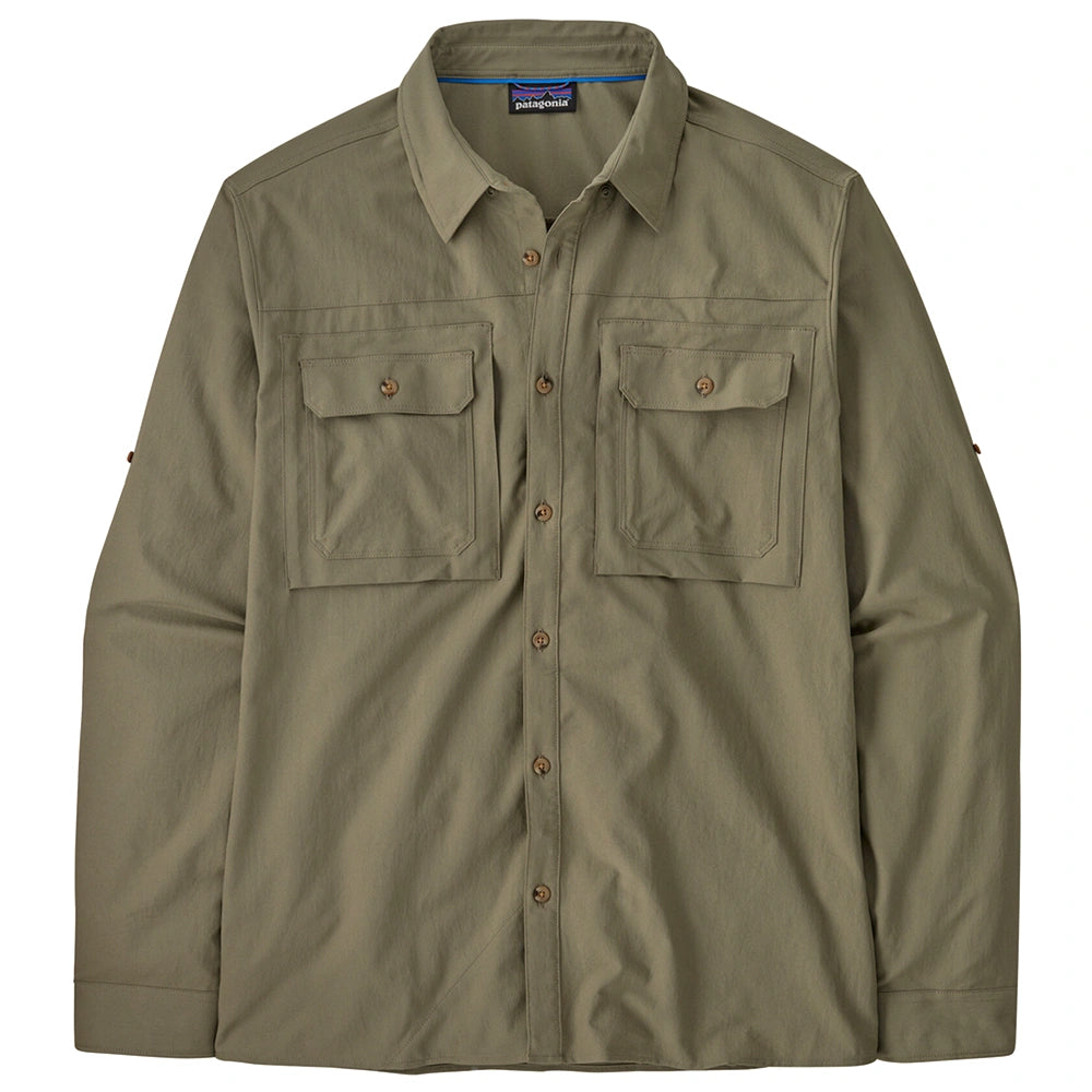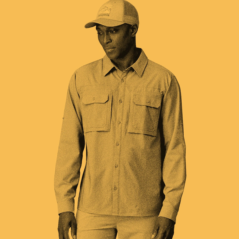The do-it-all Men's Long-Sleeved Self-Guided Sun Shirt from Patagonia combines intuitive, on-the-trail performance with 40+ UPF sun protection and breezy, all-day comfort. Made of a stretchy, quick-drying 100% recycled polyester fabric that moves athletically, stays cool and looks breezy in any situation.