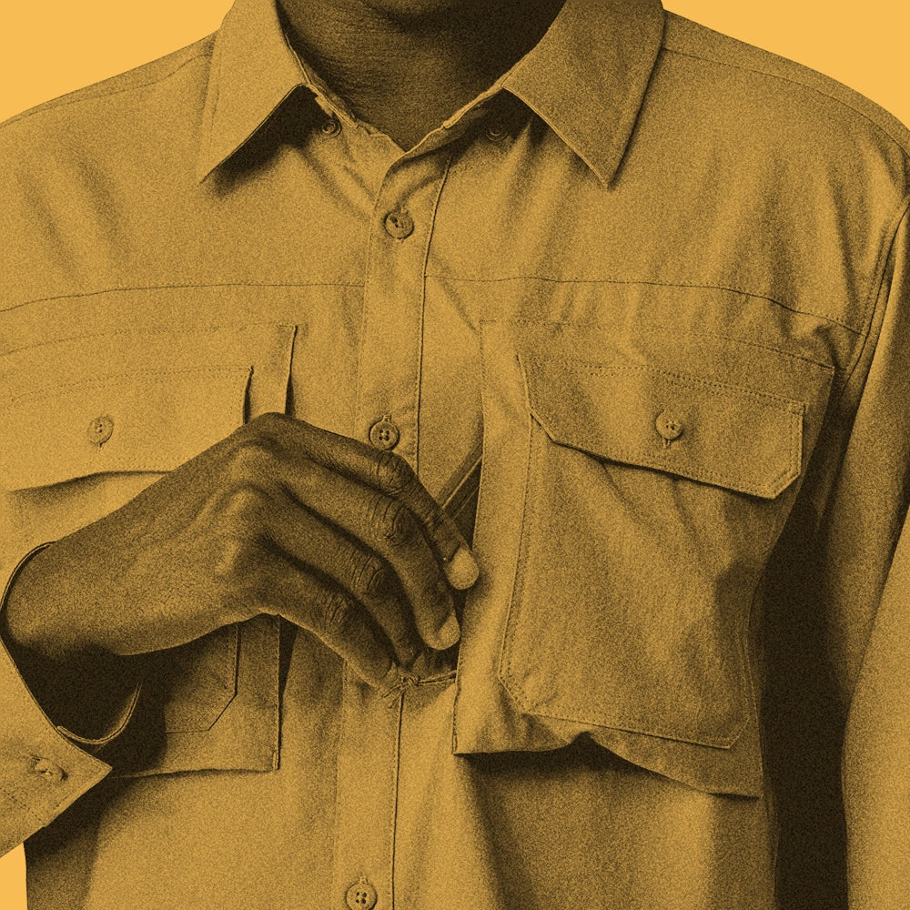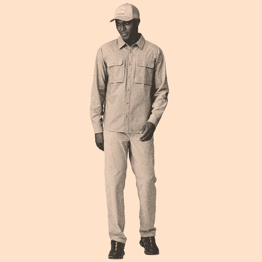 Comfortable, lightweight and quick-drying - the 100% recycled polyester plain weave provides 40+ UPF sun protection and mechanical stretch for easy movement. Two vertical chest pockets with corrosion-resistant zippers fit fly boxes and two button-closure chest pockets keep essentials close. There's even a hidden tool dock under the right-chest pocket flap.