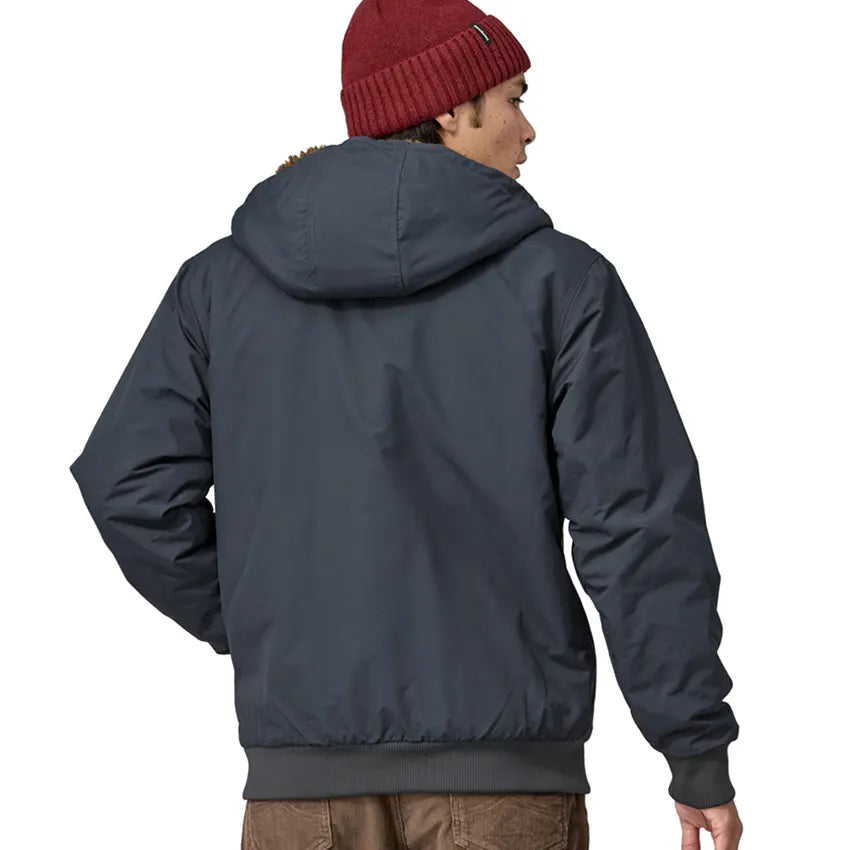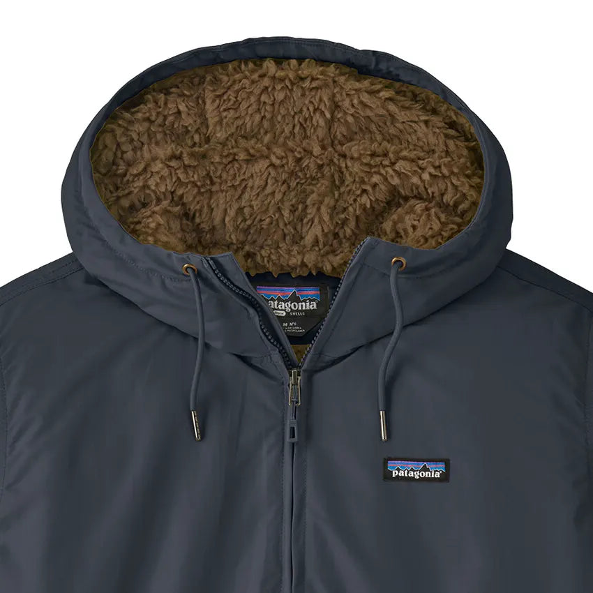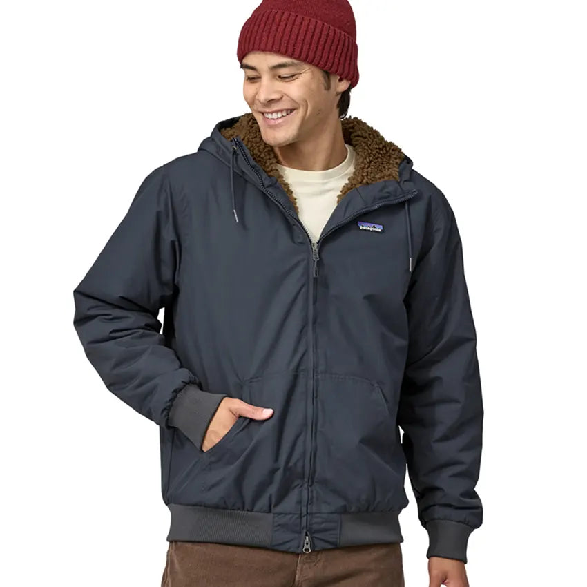 A warm and sherpa-lined hooded bomber jacket from Patagonia. Equipped with a tightly woven shell that blocks chilly winds and light rain, lined with a 100% recycled polyester fleece that will keep you cosy right into the winter months.