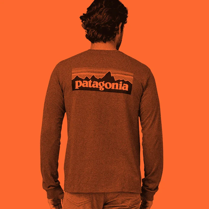 Design: Classic Patagonia original logo art on the back, small Patagonia logo detail on chest