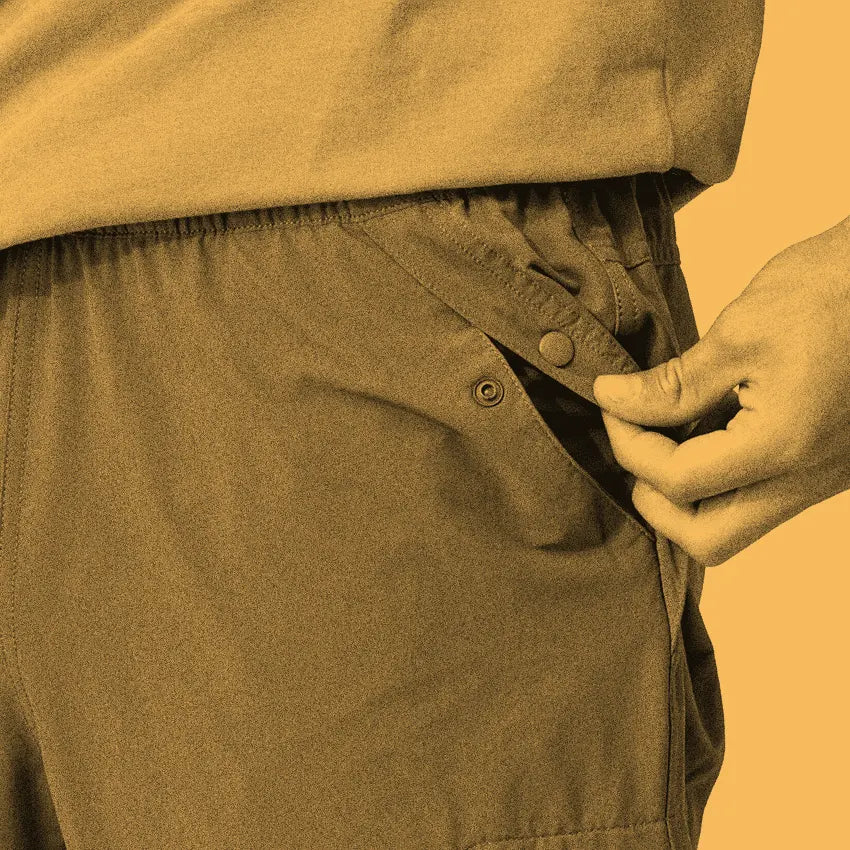 With an elastic waistband and an adjustable, integrated buckle belt you can ensure a perfect fir. The Outdoor Everyday Pants have envelope front pockets with snap closures and drainage for when you come out of the water. Back welted snap pocket and two zippered thigh pockets, also with drainage.