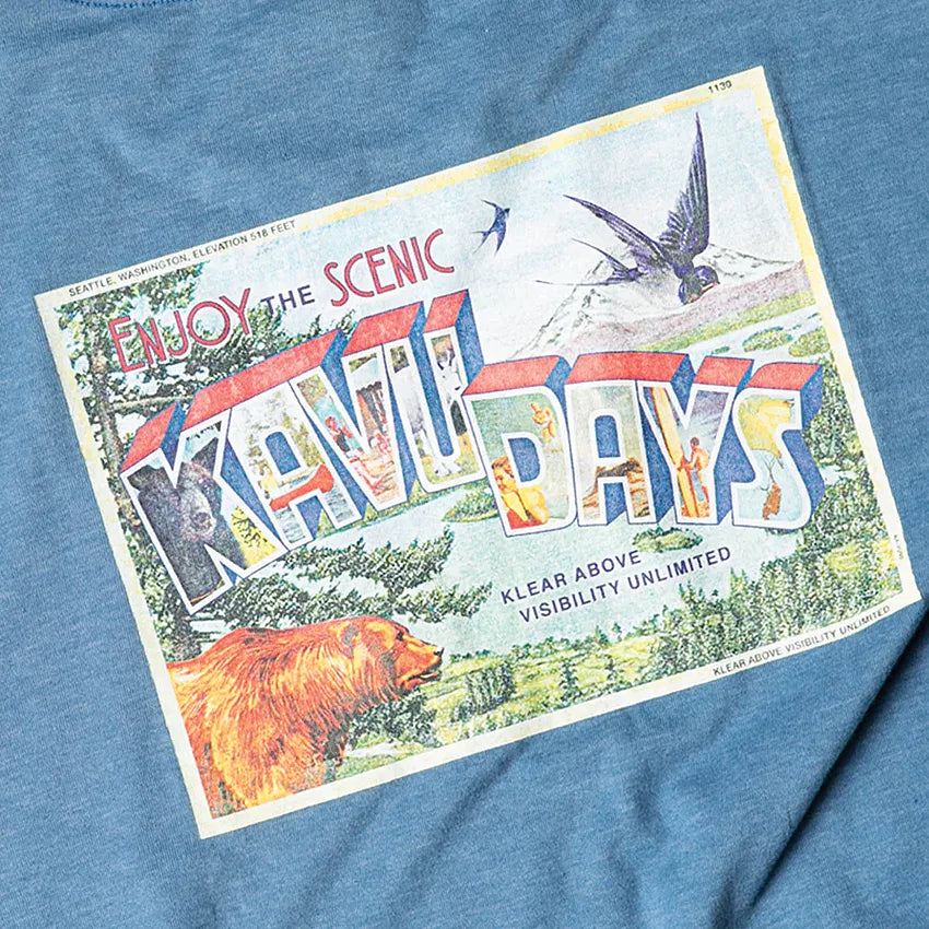 The Post Out T-Shirt is a vintage inspired t-shirt, celebrating those scenic KAVU days. Constructed with a 50/50 cotton poly blend for a super comfortable hand feel and a casual fit. Featuring a small screen print on front left chest, and main screen print design on the centre back.