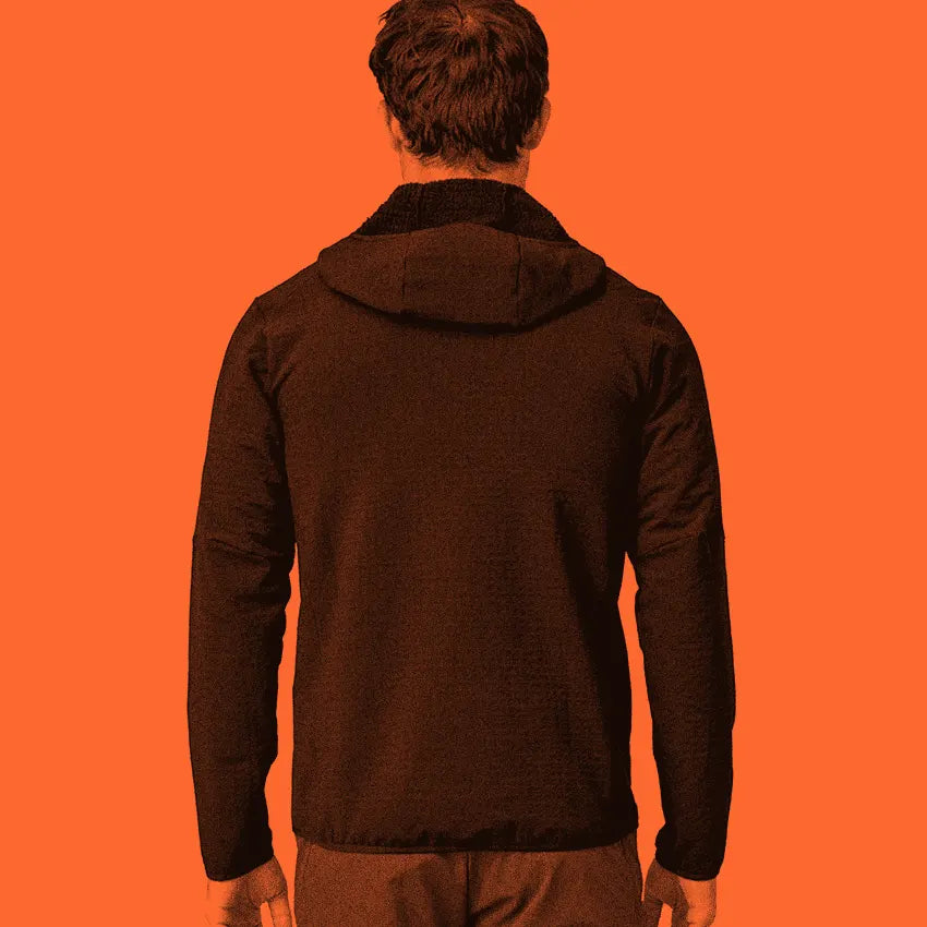 The high-loft double-weave fabric is soft and warm next to skin but doesn’t trap heat, making it perfect for high output activities. The face is durable and treated with a PFC-free DWR finish (durable water repellent coating that does not contain perfluorinated chemicals) to quickly shed moisture.