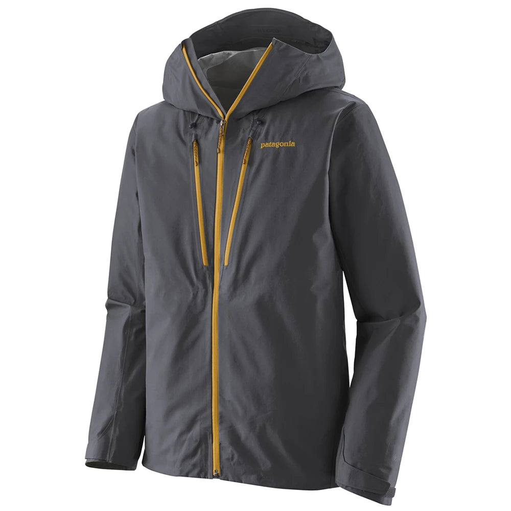 Featuring a helmet compatible hood with laminated visor and reinforced brim that effectively sheds water, two-way adjustment provides good visibility in poor conditions with or without a helmet. There are two Napoleon chest pockets with watertight zips and zipper garages, two welted front pockets stay clear of a harness or a pack waistbelt and an interior drop-in pocket.