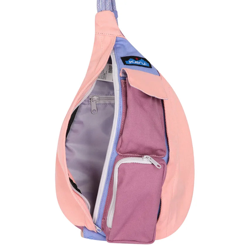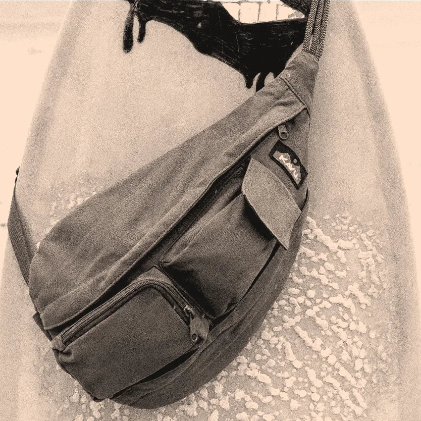This sling bag features an adjustable rope shoulder strap with side release buckle to get the perfect fit. Two vertical zip compartments, two key or cell phone pockets and a padded back with KAVU embroidery to keep everything protected.