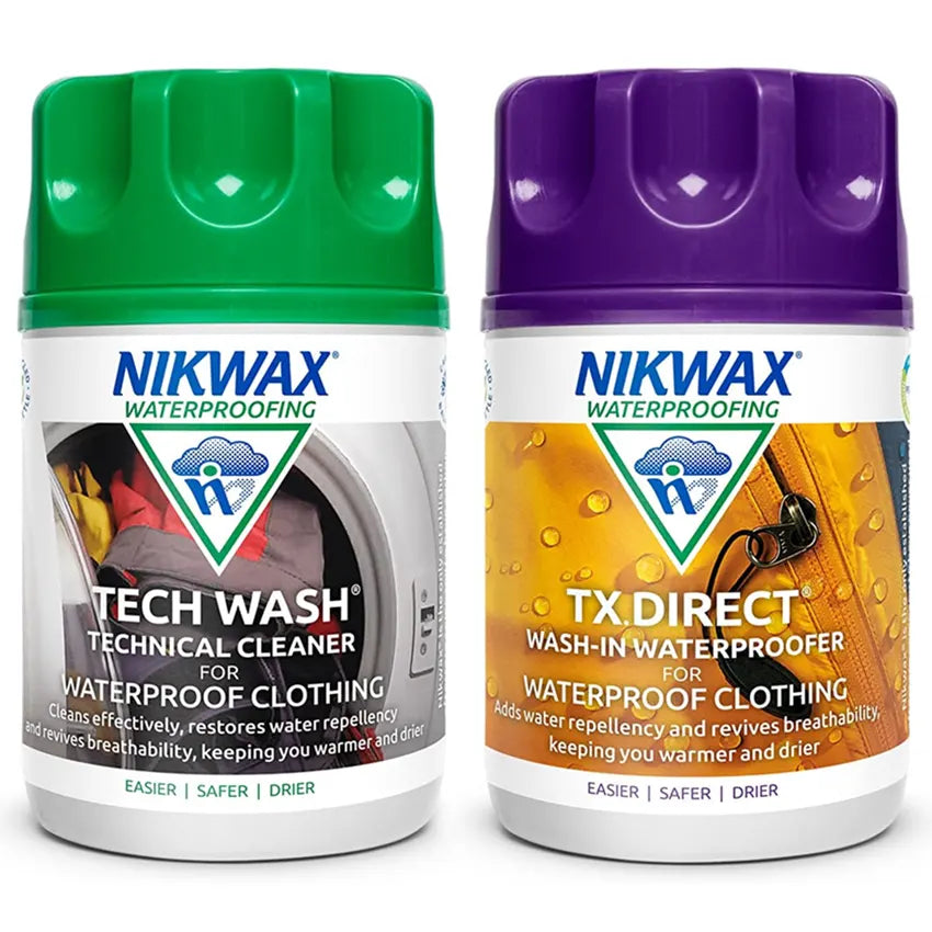 Nikwax's bestselling products available as an easy to use Twin Pack. Tech Wash cleans, restores water repellency and revives breathability of your outdoor clothing and synthetic sleeping bags. TX.Direct Wash-in is an easy to use, high performance waterproofer which adds water repellency and revives breathability without tumble drying.