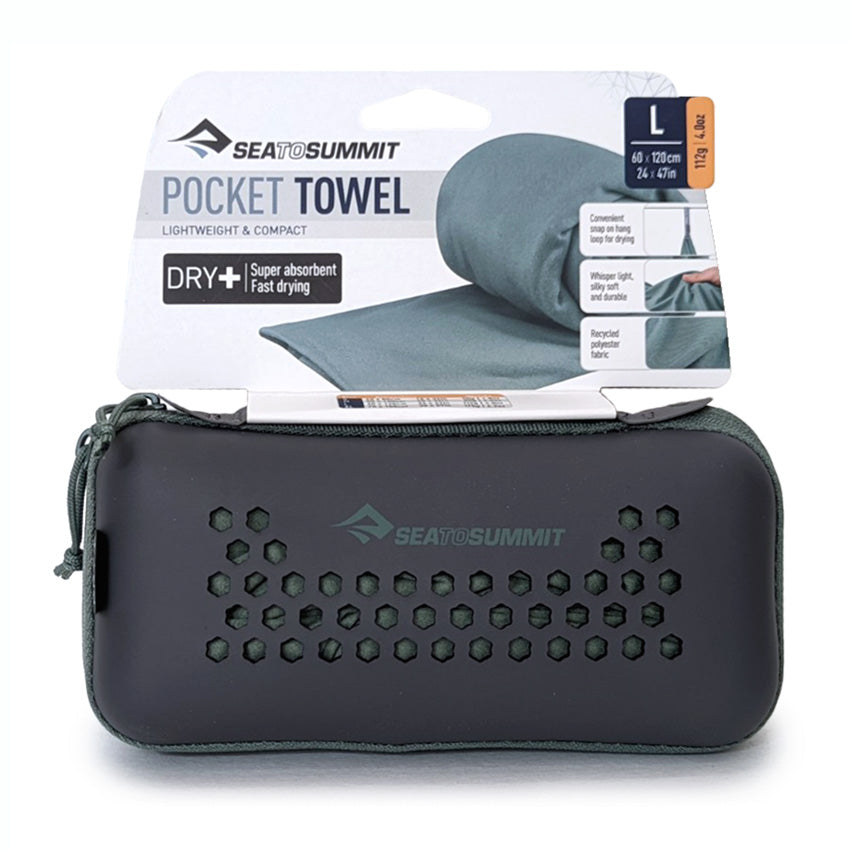 The Pocket Towel is the lightest and most compact towel from Sea To Summit that will still absorb three times its own weight in water.