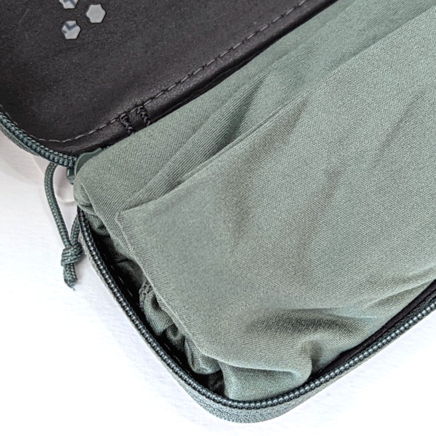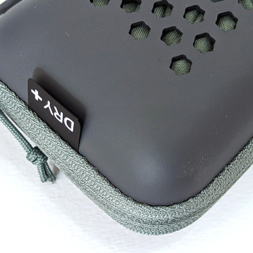 The knit used is very light, making it soft and silky to touch, and super fast drying - just wring it out and use it again. Comes with its own ventilated neoprene storage case which can be hung from a pack to speed drying.