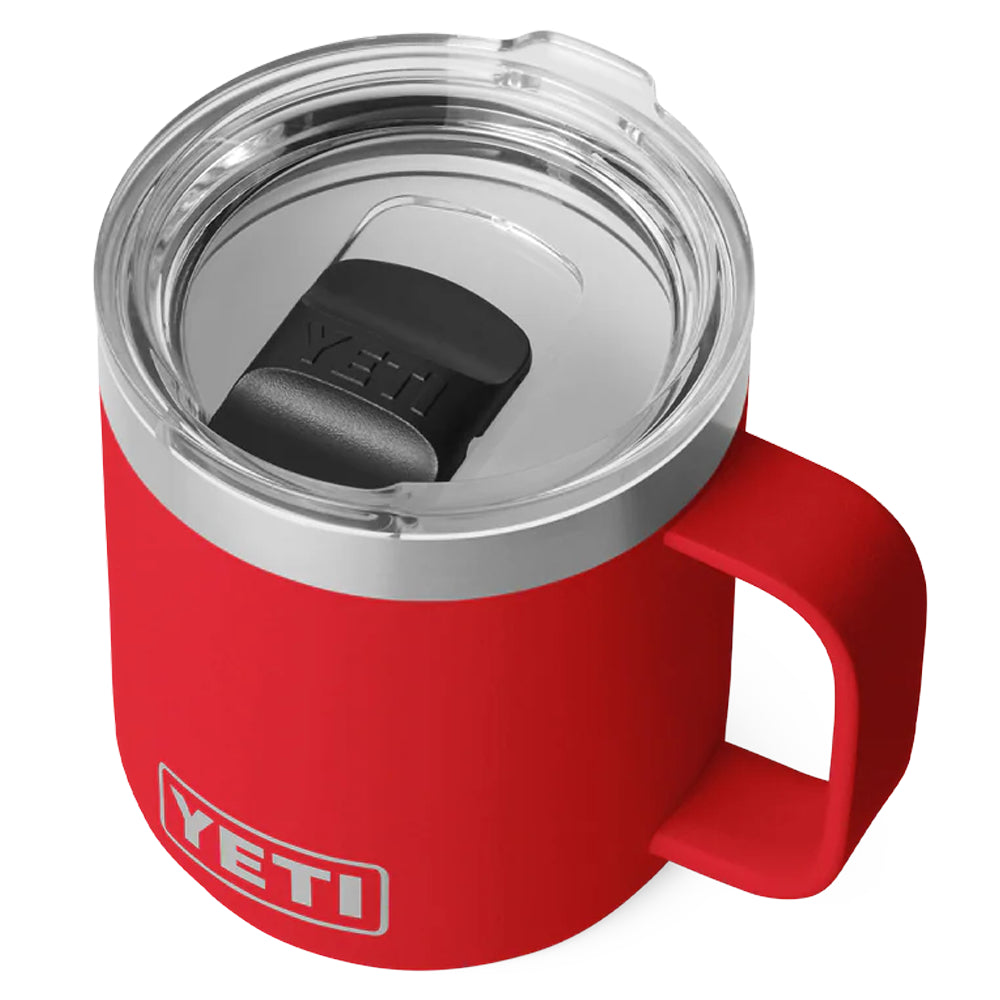 Please note: The included lid features YETI's MagSlider opening - super satisfying and easy to slide when you need refreshment - but is not fully leakproof. It will prevent splashes when walking, so please think of the Rambler 10oz Mug as a reusable alternative to a disposable coffee cup or takeaway cup than a sealable flask.