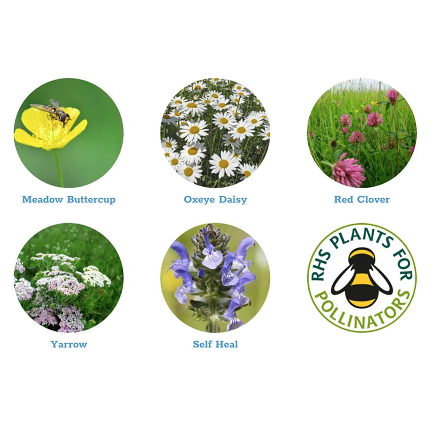 Includes: Meadow Buttercup, Oxeye Daisy, Red Clover, Self Heal, Yarrow