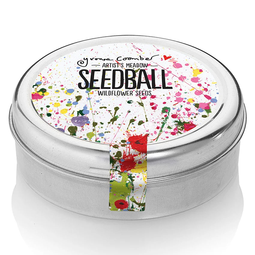 Artist's Meadow: A selection of wildflower seeds chosen by Seedball's favourite contemporary artist Yvonne Coomber. Inspired by the wildflowers growing outside of her studio in Devon, Yvonne has painted a canvas for Seedball called ‘Here Is Where All The Wildflowers Grow’. They’ve taken a section of this painting to create this totally gorgeous design for the Artist’s Meadow tin, with the seed mix being of those flowers from the painting.