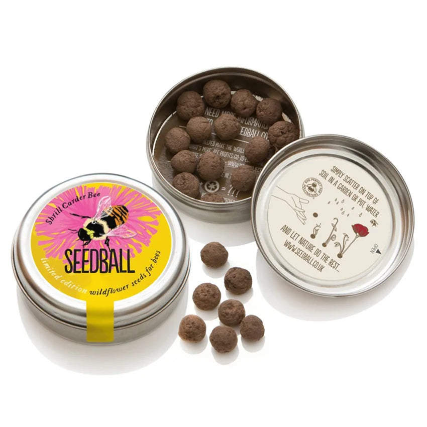 Shrill Carder Bumblebee: One of three new tins launched to celebrate the anniversary of the first Seedball tin in 2013. As Seedball’s mission is to help and inspire more people to grow wildflowers in their gardens for pollinators, they wanted to use the anniversary tins to help to raise awareness about declining British bee species, and the need to keep scattering seed balls!