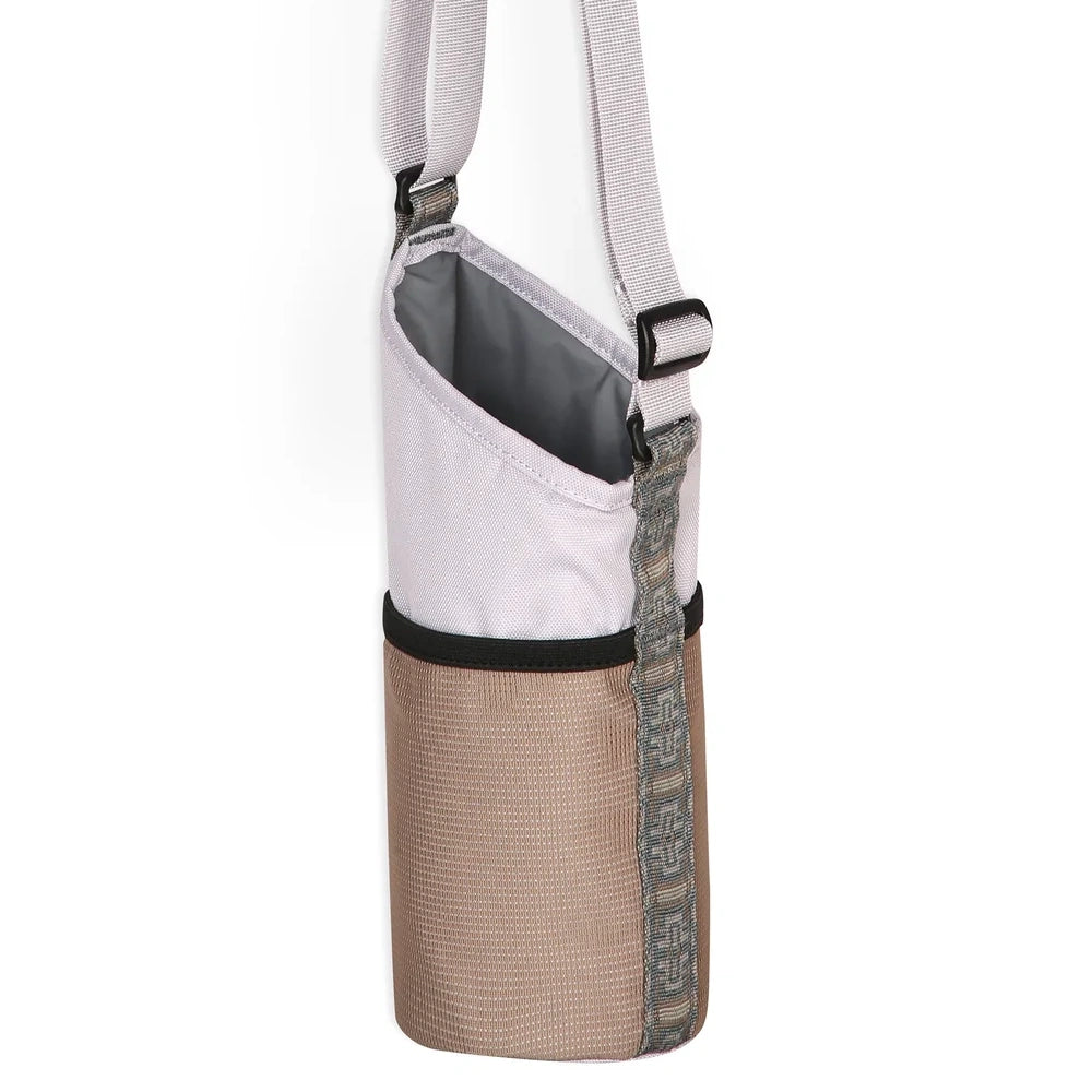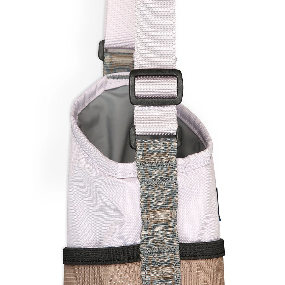 Stay hydrated and stay happy with this fully insulated and padded beverage bottle Slurp Sling. The cross body adjustable webbing shoulder strap allows you to get the fir just right. Rectangular plastic ring & tri slide hardware are durable and hard wearing. There's a stretch mesh exterior pocket with pattern webbing daisy chain detail for stashing small essentials on the slings exterior. Fits up to 32 fl oz water bottle.