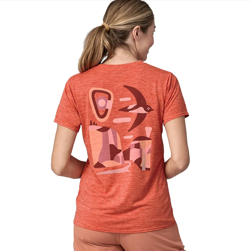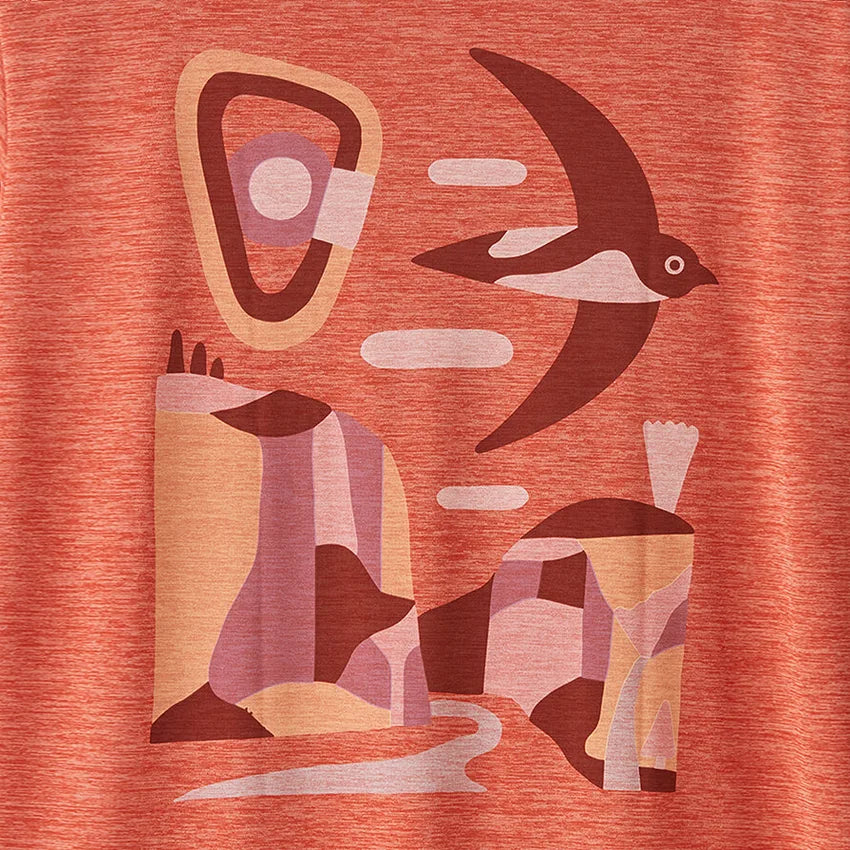 Women's Capilene Cool Daily Graphic Shirt - Lands - Granite Swift: Pimento Red X-Dye